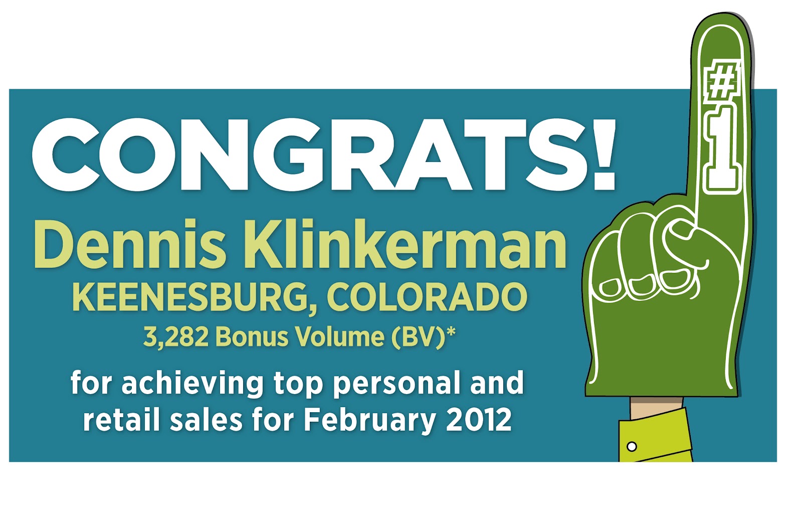 post January-March to catch up and then in the future it will be month to month. We will announce the 2011 annual winners of the Top Personal Sales as well as top recruiter during the 30th anniversary Banquet dinner May 5th in Boise, ID.